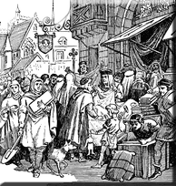 The man re-entered and addressed the girl with the first half of the ballad and she replied with the second half.